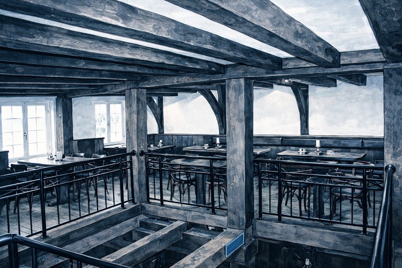 Das Henin ist kein Denkmal hinter Glas. Es wird genutzt, belebt, weitergeschrieben. Nach verschiedenen Umbauten und Betreiberwechseln ist es bis heute gastronomisch geprägt – mit wechselnden Konzepten, aber stets im gleichen Rahmen: altes Gebälk, niedrige Decken, spürbare Geschichte.